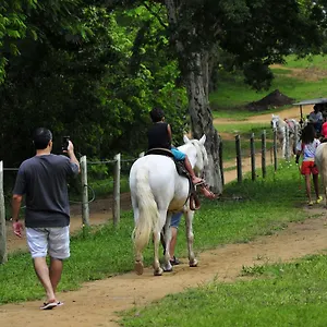 O hotel está localizado a 50 km do aeroporto de Vitória e a 800 metros do ponto de ônibus Acquamania.